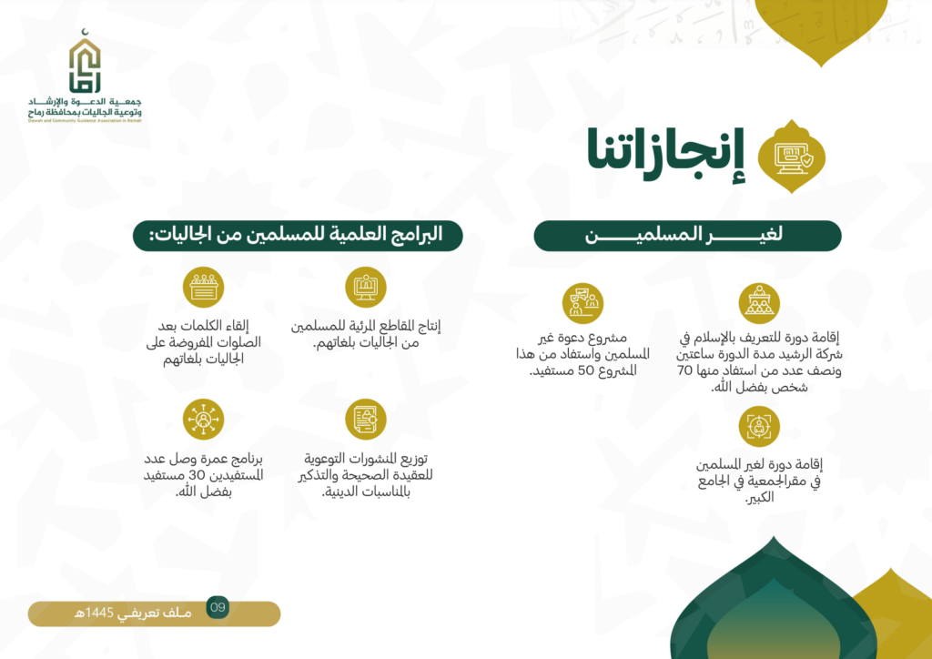 أسست جمعية الدعوة والإرشاد في عام 1443هـ برماح استشعارا بحق المسلم على المسلم ووجوب النصيحة والإرشاد