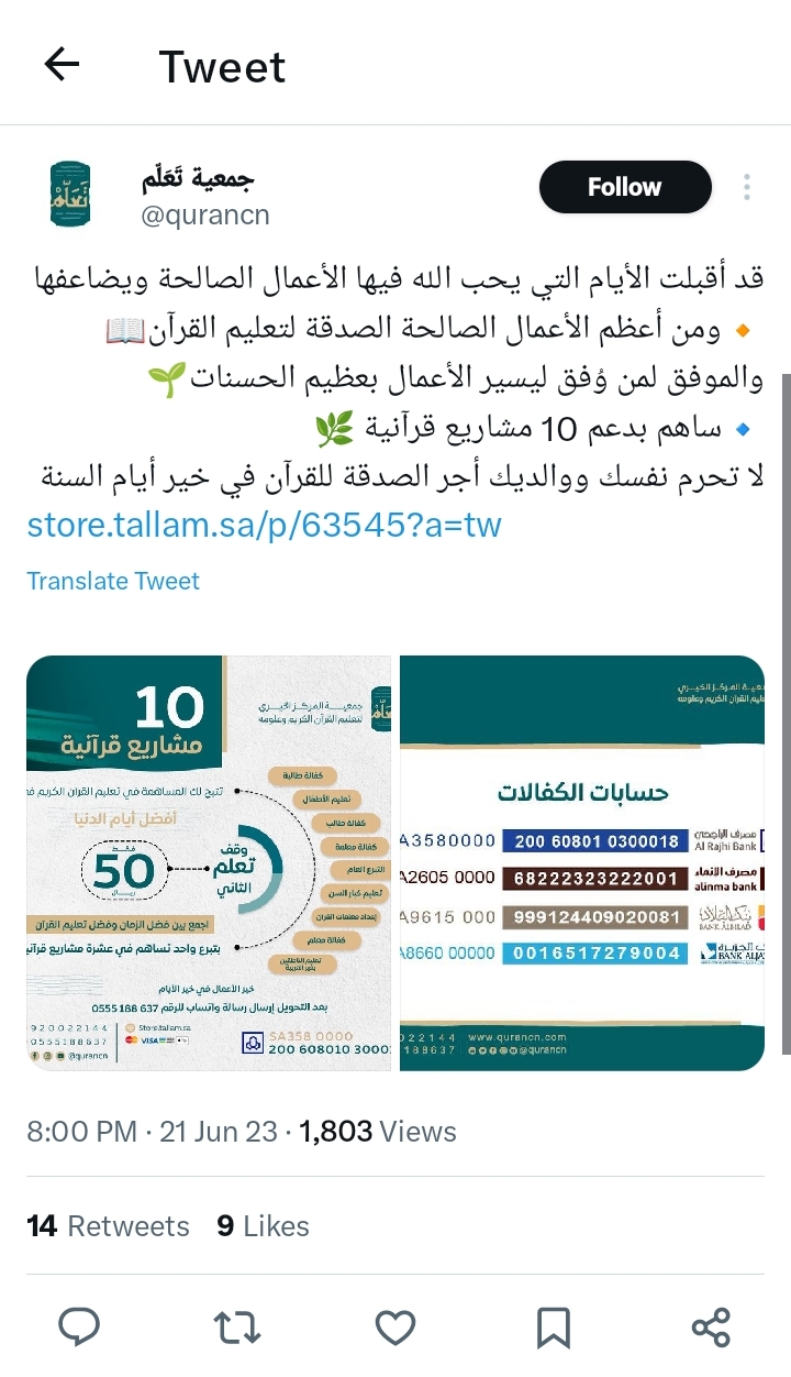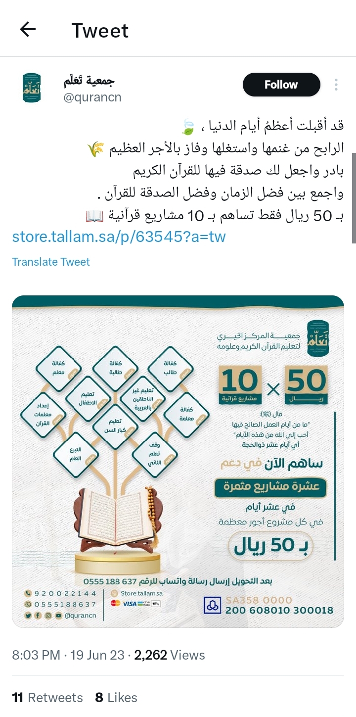 جمعية تعلّم أمضت 44 سنة في تعليم القرآن فتم تأسيسها في عام 1401 هـ ، وبفضل الله وصلت حتى الآن لخمس مدن الرياض،الخرج،الدوادمي،الدمام، الجبيل.